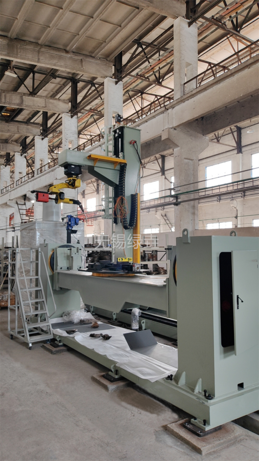 篦板@星輪機器人堆焊工作站(十軸)是根據客戶具體工件篦板和星輪工件表面堆焊設計制作的,用于篦板工件中間三個表面方格填充焊接及表面堆焊、星輪工件外圓周面及輪表面堆焊。本工作站主要由行走式升降機器人、頭尾架變位機、焊接機器人、脈沖氣保焊機及工裝夾具組成。主要是通過頭尾架變位機將工件翻轉至合適位置,行走式升降機器人運轉焊槍進行全位置焊接。本工作站技術要求高、機械結構精度高、焊接工藝要求高。