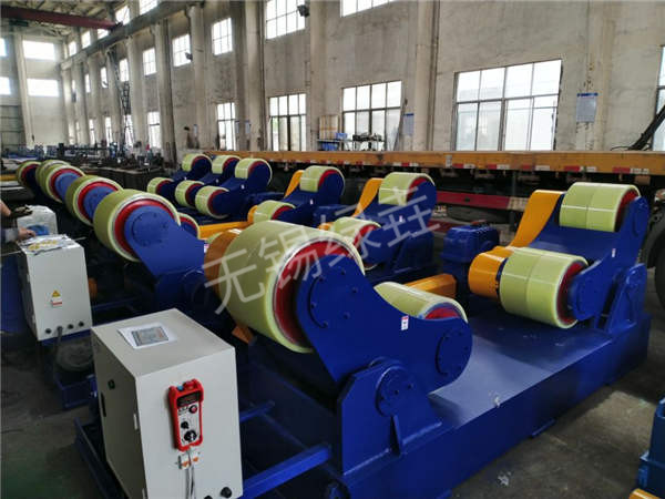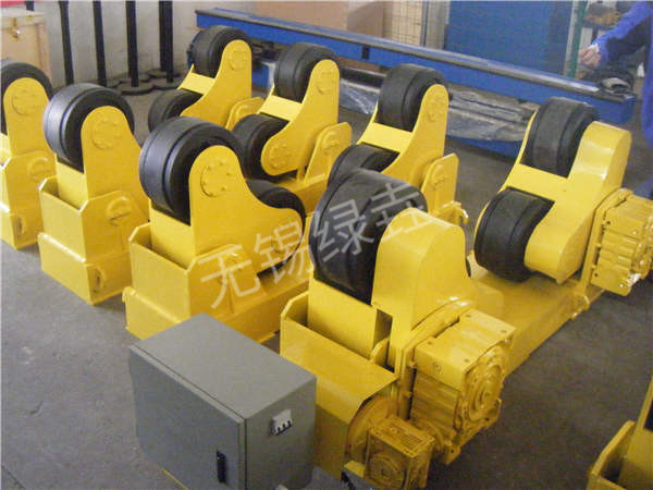 自調(diào)式滾輪架以主付機兩組為一套,即主動滾輪架和被動滾輪架自調(diào)型系列主被動架各組為四個滾輪,滾輪采用內(nèi)鐵芯,外橡膠的結(jié)構(gòu)制成。經(jīng)久耐用,使用時無震動。主動滾輪架的運轉(zhuǎn)由調(diào)速電機通過二個蝸輪減速箱同步傳動運轉(zhuǎn),采用調(diào)速控制器實現(xiàn)無級變速。
